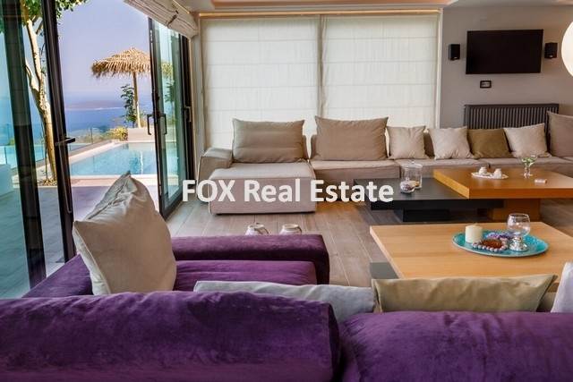 PELOPONNISOS, Tolo, a 280 sqm stunning villa, fully furnished and equipped, built in year 2005, on a 7.000 sqm land, just 8 km away from Nafplion and 174 km from the airport of Athens and Kalamata. Ideal property for both residence and for holidays. The villa is located on the side of a mountain in a unique spot with a stunning panoramic view of the Argolic Gulf and ensures total privacy. Ideal for all seasons of the year. It features 6 bedrooms, 5 bathrooms and 2 kitchens on 3 floors and can accommodate up to 16 people. Also great outdoor areas with 3 pools and 2 jacuzzi. 1st level: 1 master bedroom with bathroom, 2 bedrooms with a shared bathroom and laundry with washing machine and dryer. On this level there is also an independent luxury studio with living room, open plan kitchen and bathroom. 2nd level: living-dining room, open-plan kitchen and bathroom. 3rd level: 3 sleeping areas with double beds and bathroom. The villa is furnished and equipped with furniture from famous brands and state-of-the-art appliances.Property Code: 2625Μ-Π. FOX Real Estate-Helen Zisimatou, tel.: 2110137699, mob.: 6980083257. For our pricing policy please visit: www.foxezs.gr